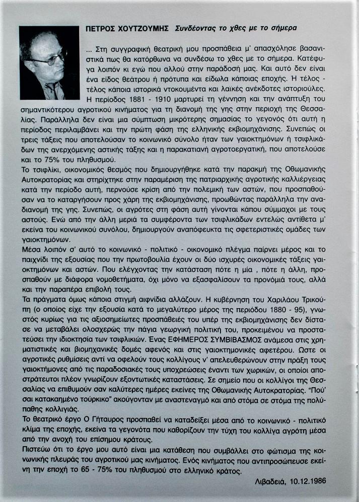 Το κείμενο “τσιφλικάδες” και κολίγοι ήταν του Βασίλη Πατρώνη, ιστορικού λέκτορα του Πανεπιστημίου Αθηνών.