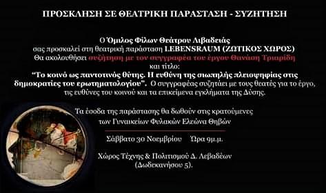 3ης καλύτερης παράστασης (ψηφοφορία κοινού) στον Όμιλο Φίλων Θεάτρου Λιβαδειάς