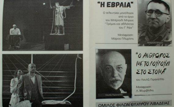 Η Εβραία μετάφραση: Μάριος Πλωρίτης σκηνοθεσία: Κρέοντας Λαβδακίδης Διανομή Ιουδήθ Κέιθ: Ελένη Καλομοίρη Φριτς: Δημήτρης Λιάπης σκηνικά- κοστούμια: Σπύρος Γουργιώτης κατασκευή σκηνικών: Γιώργος Αθανασίου μουσική: Πάνος Δημητρέλος φωτισμός- κονσόλα: Θανάσης […]